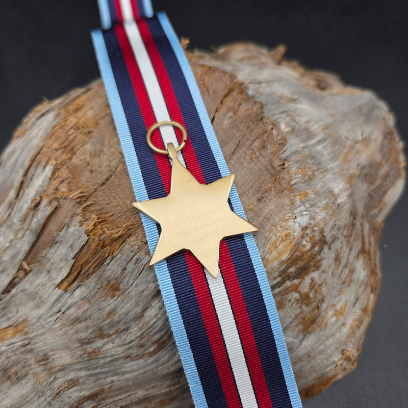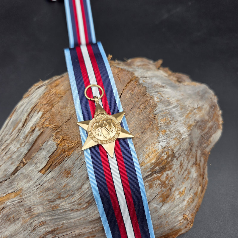 Full size replica from $60 court mounted. Miniature replica from $50 court mounted. Remounting of Original or replica + clean from $60 court mounted. Further reading In 2012 the British Government accepted the recommendation of a review of service awards to introduce the Arctic Star to recognise those who served in areas above the Arctic Circle during World War II. The Arctic Star is intended to commemorate the Arctic Convoys and is designed primarily for the ships of the convoys to North Russia and their Escorts. Design The Arctic Star is a yellow copper zinc alloy in the form of a six-pointed star, measuring 44 mm between opposite points. The obverse has a central design of the Royal and Imperial cypher, surmounted by a crown. The cypher is surrounded by a circlet containing the words ‘THE ARCTIC STAR’. Ribbon The Arctic Star ribbon has stripes of light blue, dark blue, red and white. Order of Wear Is below the Air Crew Europe Star. And above the Africa Star. Further information can be found at Defence Honours and Awards GOV.UK Information sourced from the DHAM. |
