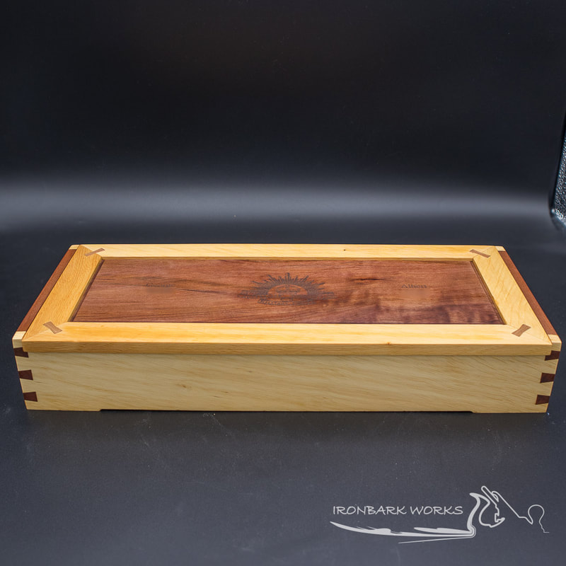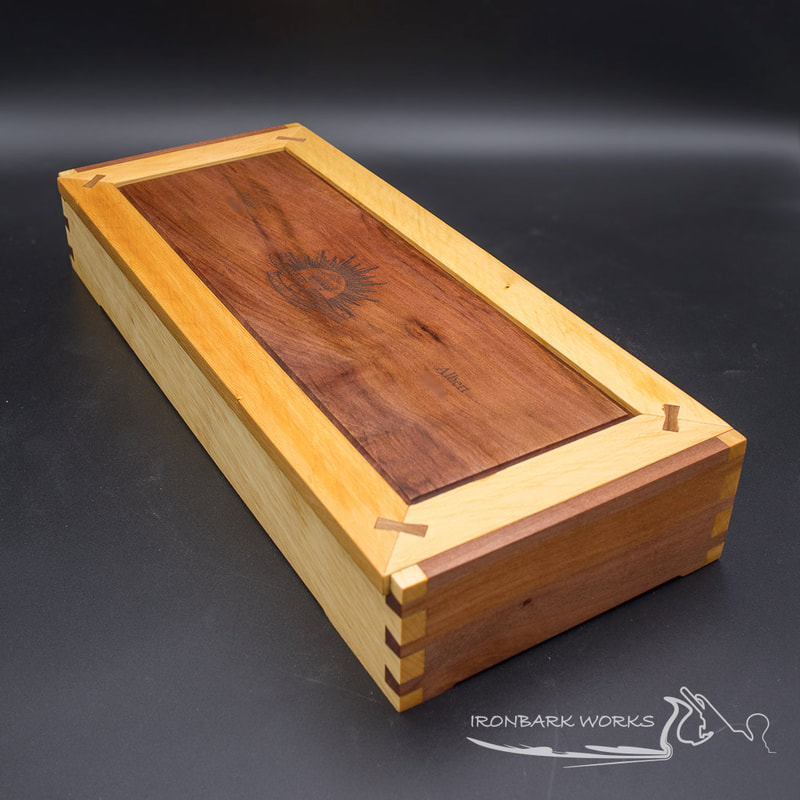 This Series I box is a tribute to two brave soldiers. The first made the ultimate sacrifice, being killed during World War One in France, while the second served in Northern Australia during World War Two. Crafted with Huon Pine and Sassafras, featuring quality Brusso hinges, it stands as a testament to their service and sacrifice.